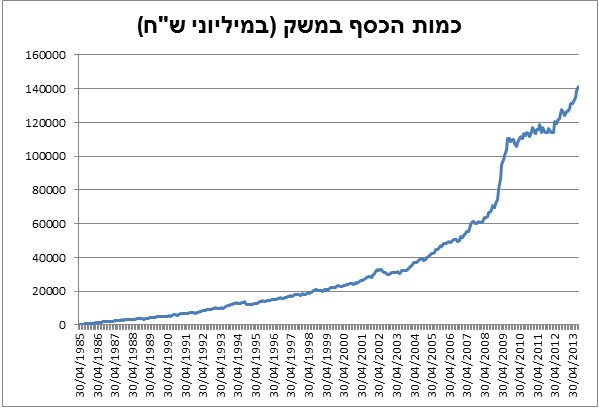 ב1954 הוקם בנק ישראל ומאז כל הכסף במדינה מיוצר מחוב שמקורו במערכת הבנקאית. מאז המקור היחידי של הממשלה להכנסותיה הגיע רק מהלוואות שנלקחו מהשוק הפרטי וגביית מיסים.