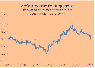 יותר, של 3 נ"ב לרמה של 2.66%. כך, שיפוע עקום ציפיות האינפלציה (ציפיות לעשר שנים