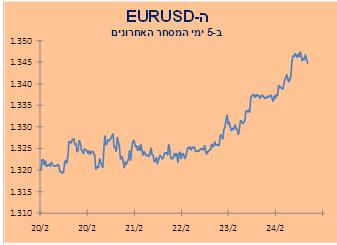 ה-EUR התחזק בשיעור של 2.34% כנגד ה-USD. שעור התחזקות