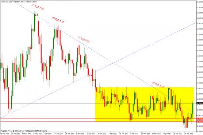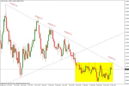 במידה ומדובר בשבירה כלפי מטה ניתן לצפות ליעד של 0.9320 (800 פיפס של היעד ההתחלתי בשבירת המשולש).