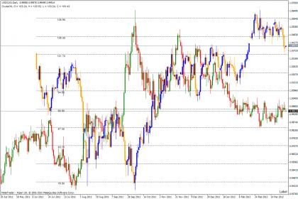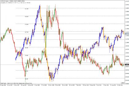 הצמד usd/cad נמצאת במגמה ירידה ראשית, מ21 לינואר 2002 שהיתה בשער 1.6196 (שיא כל הזמנים)
