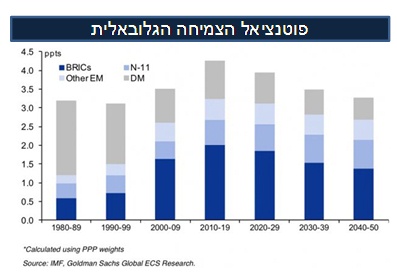 לעומת הפסימיות של ברוקינגס, כלכלני בנק ההשקעות גולדמן זקס מעריכים כי העשור הנוכחי הולך דווקא להיות שיא הצמיחה הגלובאלית: