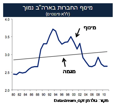 אולי קצב ריבוי האוכלוסייה קטן, הנשים משולבות כבר ברובן בכוח העבודה ועל סין לא כ"כ סומכים, אבל יש עוד אפשרויות למנוע צמיחה. חזרת המינוף הפיננסי של החברות לממוצע. המינוף הפיננסי של החברות בארה"ב נמצא מתחת לממוצע ומתחת לקו המגמה. יתר על כן, קיימת מגמה חיובית של התייעלות בקרב תאגידים בארה"ב.