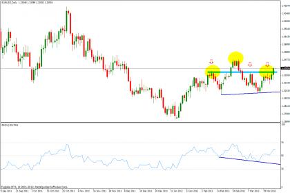 לאחר סטיה נסתרת חיובית שקיבלנו ביורו/דולר (מסומן בכחול) הצמד התחילה להתחזק.