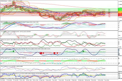 ומתחילים להעמיס על הגרף כל מיני אינדיקטורים ואוסילטורים, שלרוב רק יפריעו לנו ויכניס אותנו לספקות לכדאיות העיסקה, והגרף תראה בערך כך