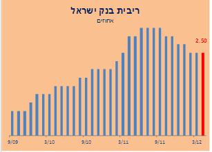 >ריבית בנק ישראל לחודש אפריל 2012, נותרה ללא שינוי ברמה של 2.50%.
