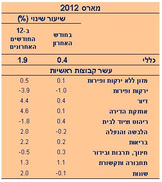 > מדד המחירים לצרכן לחודש מארס 2012 עלה ב-0.4%.
