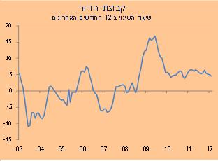 נתון פחות מעודד נוסף, הינו כי לפי נתוני המגמה בחודשים דצמבר 2011 – מארס 2012, קצב הגידול השנתי של מדד המחירים לצרכן הגיע לרמה של 3.2% - מעל היעד הממשלתי.