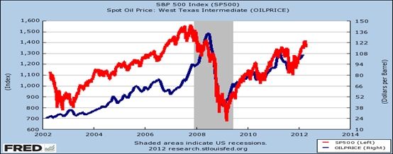 אחד הנושאים שתופסים את כותרות החדשות הכלכליות לאחרונה הוא מחיר הנפט והשפעתו על הפעילות הכלכלית. האקסיומה המקובלת היא שעלייה במחיר הנפט פוגעת בצריכה הפרטית ומן הסתם משפיעה לרעה על סך הפעילות הכלכלית. אז הנה שני גרפים שיכולים לספק חומר למחשבה. בגרף הראשון השווינו בין מחיר הנפט למדד 500 S&P. גם אנחנו שפשפנו את עינינו כשראינו את הגרף הזה לראשונה. לצד המתאם המדהים בין שני המדדים, בעשר השנים האחרונות עלה מדד ה 500 S&P ב 25% בזמן שמחיר חבית הנפט הכפיל את מחירו פי 4.5 (!!!).