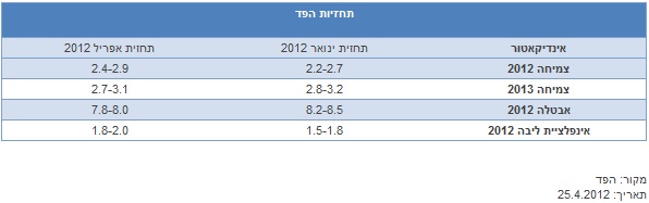 יודיע על תוכנית חדשה. באופן טבעי, ולאחר רבעון ראשון מצוין, הפד נאלץ לעדכן את תחזית הצמיחה ל-2012 כלפי מעלה (ראה טבלה) כאשר תחזית האבטלה עודכנה כלפי מטה בעיקר בגלל שהתחזית הקודמת כבר התממשה בפועל. תחזיות הצמיחה ל-2013 ו-2014 דווקא הונמכו.