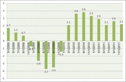 צמיחה שנתית – תמ"ג: 2.5% (2011), (תחזית: 2.2% בשנים 2012/3)