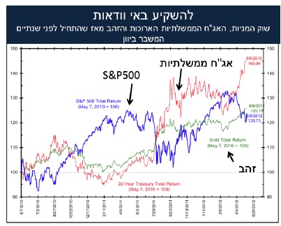 בכלל, מי צריך וודאות כדי להשקיע. מאז פרץ המשבר ביוון לא נראה שהיה אפיק השקעה אחד שהיה רע להיות בו – כל מטאטא ירה. ראו בגרף המצורף את התשואות שהשיגו המשקיעים במדד המניות S&P500, בזהב ובאג"ח ממשלתיות אמריקאיות ל-10 שנים. כמעט לכל סוגי המשקיעים היו באותן שנתיים את תקופות הזוהר שלהם...