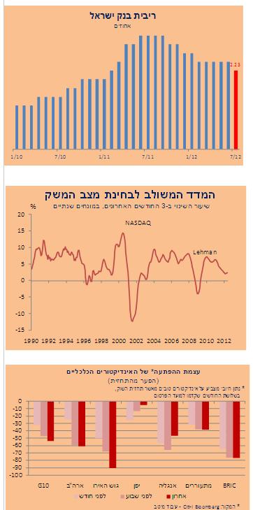 בנוסף, עדכן בנק ישראל עדכן את תחזיות הצמיחה שלו לשנת 2012 ו-2013. תחזית הצמיחה לשנה הנוכחית נותרה ללא שינוי ברמה של 3.1%. התחזית ל-2013 הופחתה מ-3.5%, לכדי 3.4%.