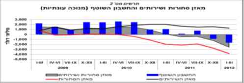 4. עודף בחשבון השוטף אשר נשמר משנת 2003 ועד 2010, כאשר מהרבעון הרביעי של 2011 החל גרעון בחשבון השוטף כאשר נכון ל-סוף הרביע הראשון של 2012 מדובר על גרעון בחשבון השוטף של 2.5% תוצר.