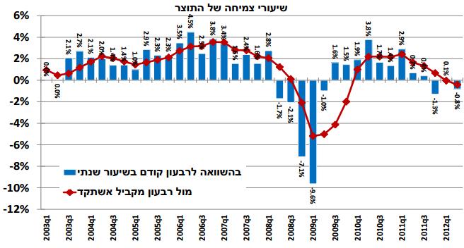 התוצר גדל ברבעון השני של 2012 בשיעור שנתי של 3.2 אחוזים (על פי האומדן הראשוני), גבוה מהתחזית שלנו וממוצע התחזיות (צמיחה של 2.5 אחוזים) והתוצר העסקי גדל בשיעור מרשים של 3.7 אחוזים. במיוחד הפתיע לטובה הגידול