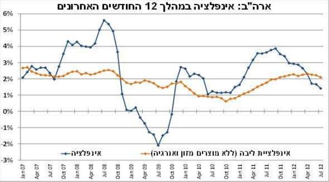 מדד המחירים לצרכן בארה"ב נותר ללא שינוי גם בחודש יולי והאינפלציה ירדה ל-1.4 אחוזים. מדד הליבה עלה ב-0.1 אחוז בלבד, זאת לאחר עלייה ממוצעת של 0.2 אחוזים בארבעת החודשים הקודמים, אינפלציית הליבה ירדה ל-2.1 אחוזים.
