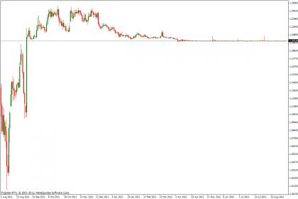כאשר הצמד הגיע ל 1.2 בתאריך 5 באפריל, מחיר אשר הבנק המרכזי של שוויץ הודיע שלא ירד מהמחיר הנ"ל, - בהודעת ההצמדת הפרנק השוייצרי ליורו לפני שנה ב 6 בספטמבר אבל לא נמוך ממחיר 1.2 - אפשר לראות בגרף שהמחיר פשוט לא זז מעבר לכמה פיפסים בודדים ביום (ה ATR מצביע נכון להיום על 3 פיפס).