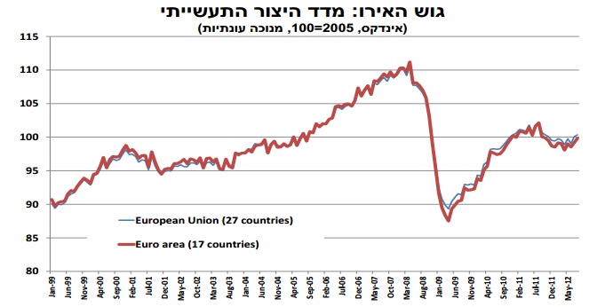 הייצור התעשייתי בגוש האירו עלה ב-0.6 אחוז באוגוסט, טוב בהרבה מהצפי (חודש שני ברציפות). למרות זאת הייצור נמוך ב-2.9 אחוז בהשוואה לרמתו באוגוסט אשתקד כאשר ה-IMF מעריך שהתוצר יתכווץ ב-0.4 אחוז ב-2013 ויצמח בשיעור מזערי של 0.2 אחוז ב-2013.