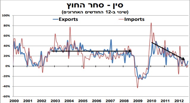 ב-9.9 אחוזים והיבוא גדל ב-2.4 אחוזים. למרות זאת ניתן לראות שהמגמה ארוכת הטווח עדיין פוחתת. על פי ה-IMF התוצר יגדל ב-2012 ב-7.8 אחוזים (הנמוך ביותר מאז 1999) וב-8.2 אחוזים ב-2013.