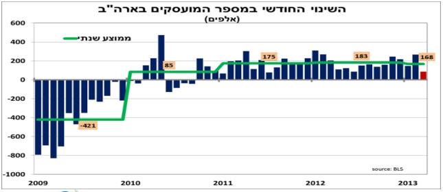 אלף) ובסיכום הרבעון הראשון של 2013, הגידול החודשי במספר המועסקים קרוב לממוצע החודשי שנרשם ב-
