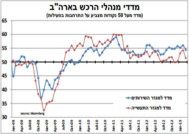 השירותים ירד ל-54.4 נקודות. שניהם עדיין מצביעים על התרחבות אך פחות בהשוואה לחודשיים הקודמים.