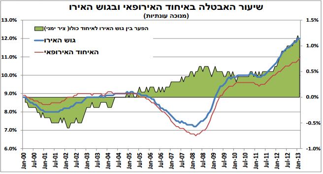 ובפברואר האבטלה הגיעה ל-12 אחוזים בגוש האירו ול-10.9 אחוזים באיחוד כולו. ב-12 החודשים האחרונים הפער
