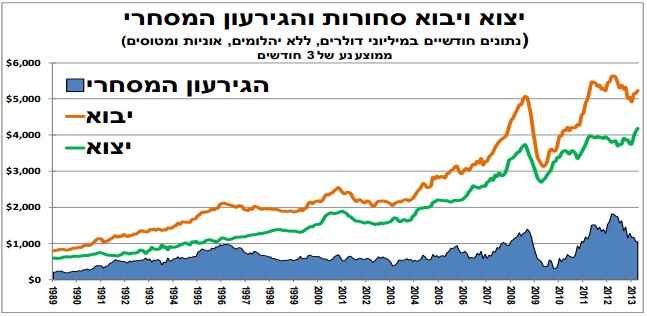 גדל ב-14.7 אחוזים והיבוא ב-16.8 אחוזים. יש לציין שחלק מהשיפור שנרשם במסחר הוא
