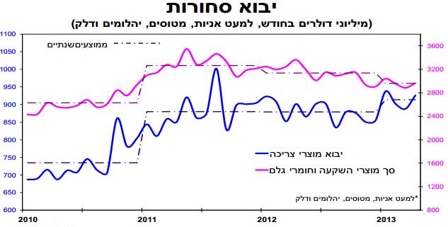 הגידול ביבוא משקף גידול בסך יבוא מוצרי צריכה (4.3 אחוזים), הן של צריכה שוטפת (3.5 אחוזים) והן של מוצרים