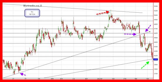 לסיכום : הסיכויים על פי שלושת טווחי הזמן של הגרפים הוא יותר לשבירה מאשר לפריצה, וכמובן שדברים אלא יכולים להשתנות , בהתאם לתנועת מחיר חדשה. מצבו של הגרף אגום, ובעייתי, קשה לראות טכנית בשלב זה , הבראה מסויימת במחיר כאשר כול עלייה כרגע הוא לצורך ירידה נוספת , ולמעשה כול עלייה לאזור שבין 4400--4500, יכולה להתקבל טכנית ללא שינוי הצפי שהוא מטה, ולכן רק פריצה של ה 5000 מעלה יבטל לחלוטין את הצפי הנובע מסקירה זו , מה שכרגע נראה כקשה ביותר.
