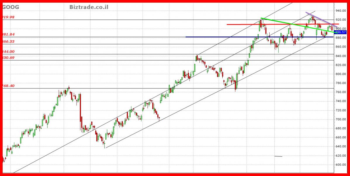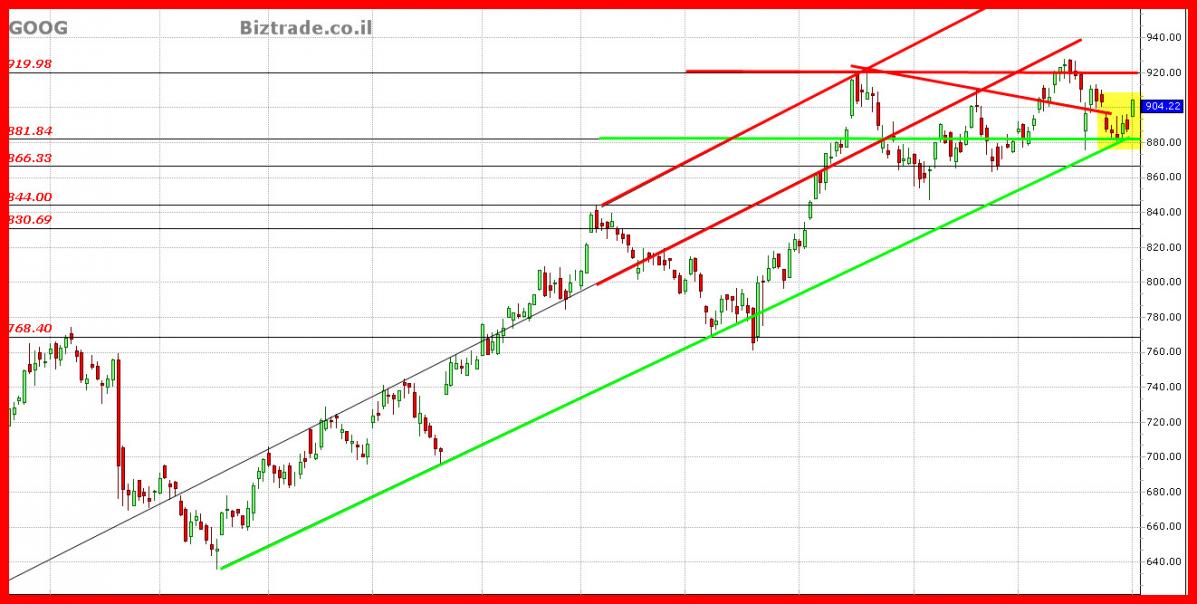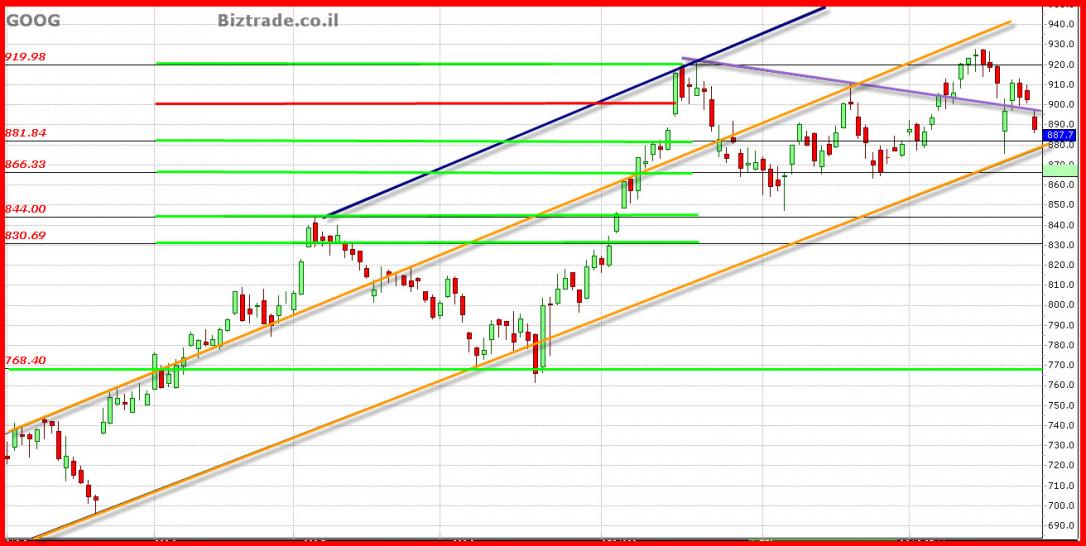 נק" הפריצה של המחיר של מנייה נמצא ב 844$ כך שכול עוד המחיר מעל ערך זה תיחשב המנייה כחיובית להמשך, יחד עם זאת מעל ראשה נמצאים כרגע התנגדות ב 900$ ומחיר שיא אחרון ב 920$ , כך שעל הקונים להוכיח כמה דברים במידה ורוצים להמשיך מעלה ! המתנדים הטכניים בעד המשך עליות , ולא מן הנמנע שנראה את המחיר בקרוב בקרבת ה תקרה הכפולה ב 920 , במידה ויפרוץ את קו ה 900.