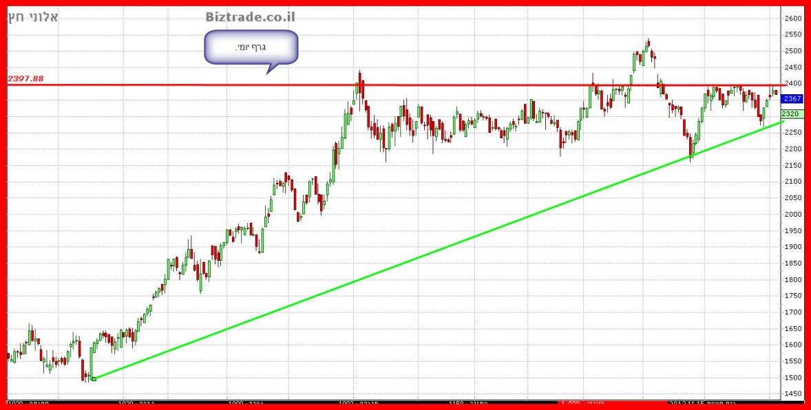 אלוני חץ : לאחר מספר ימים של הליכה צדית המחיר כן תופב יוזמה ויורד כצפוי ממנו, נעצר במדוייק ב 2300 כאשר יתכן שבירה היום , לקראת ה 2250.