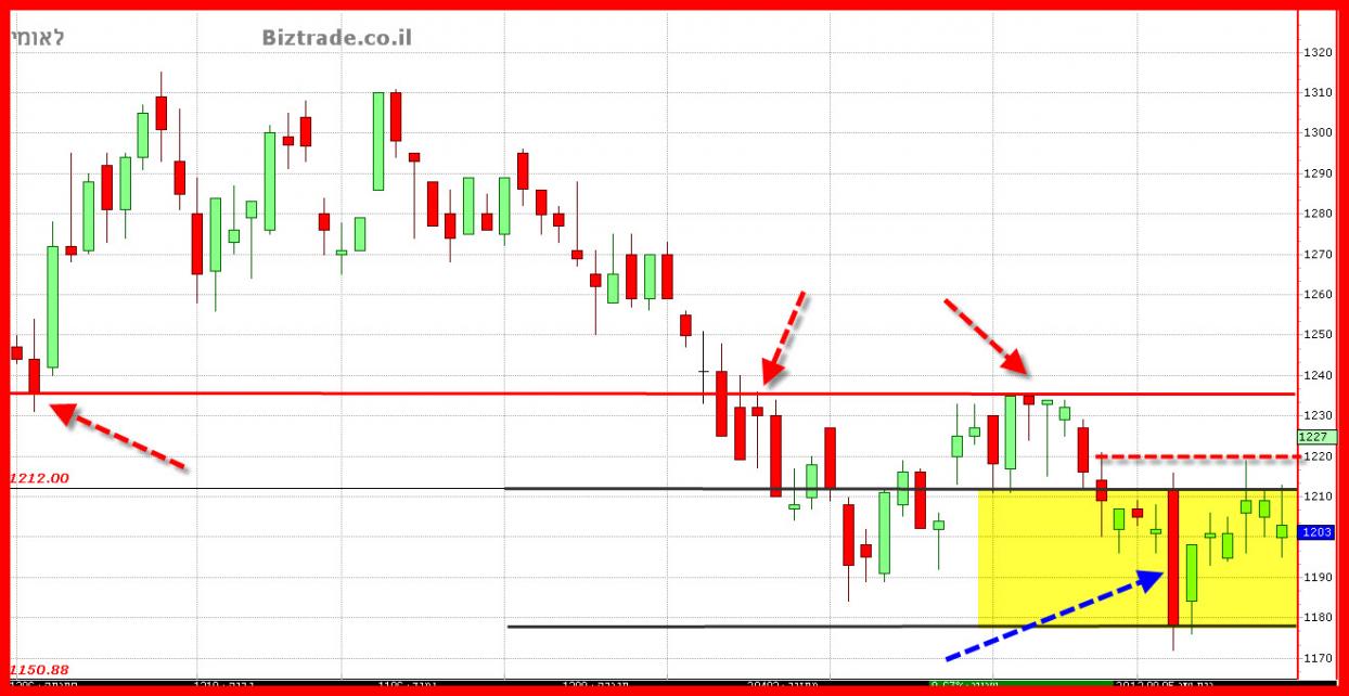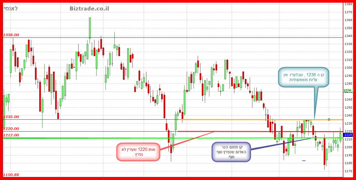 המחיר סוגר היום 2 נק" מתחת ל קו ה 1200 כך שמספיקה פתיחה בגפ מעלה קטן מחר בכדי שמהלך עולה יוכל לצאת לדרך.