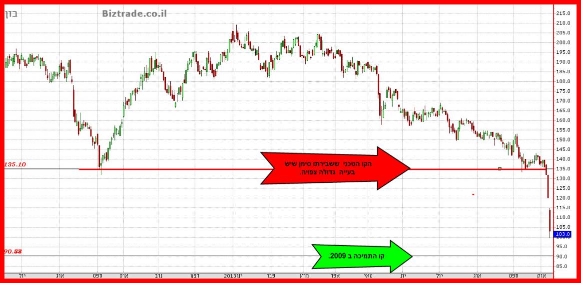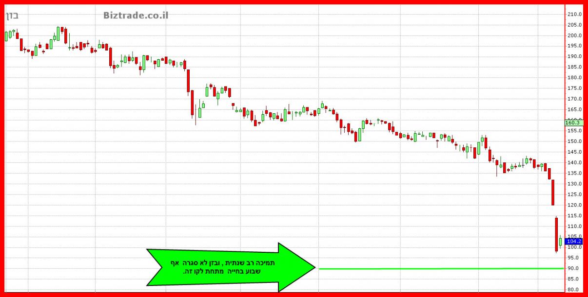 אכן המחיר הגיע ל תמיכה הרב שנתית ב 90 וממנו מוצא תמיכה ועולה אל מעל ה 100 , עם סגירה ב 106.