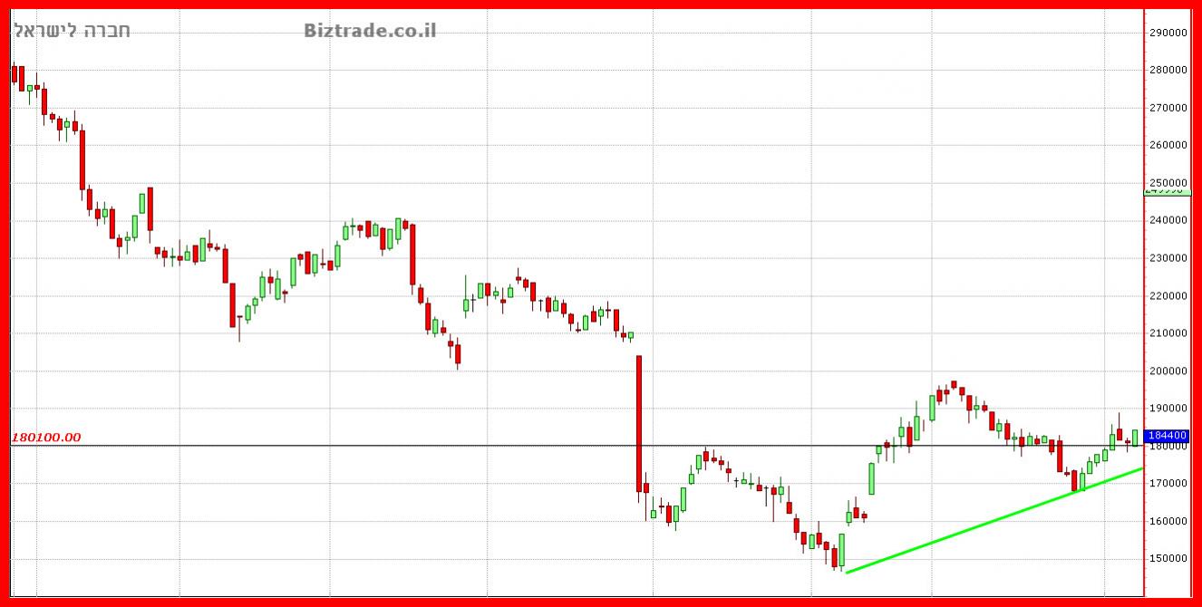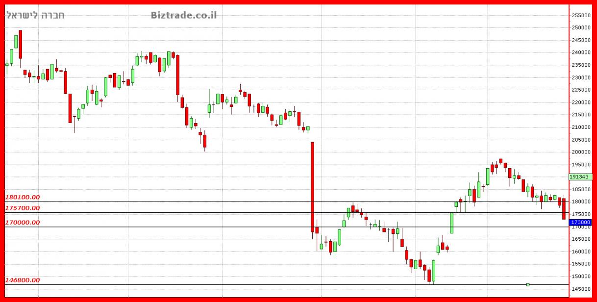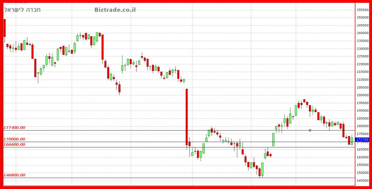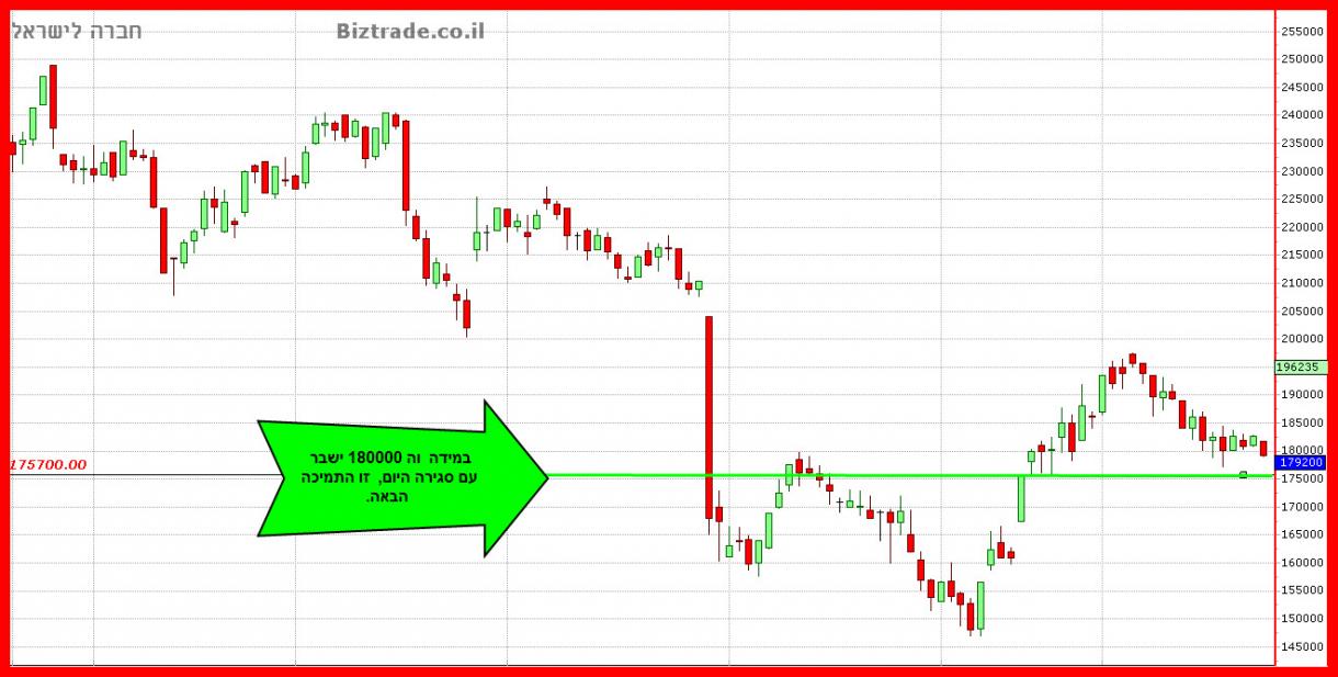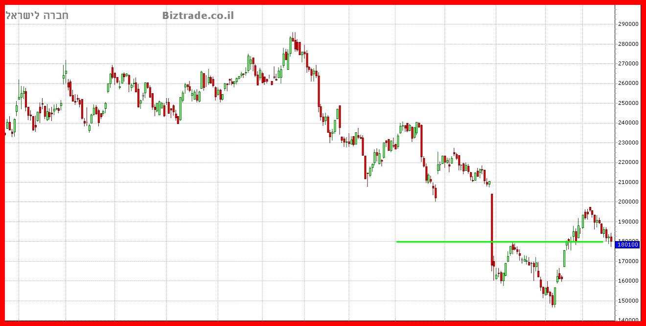 בעדכון האחרון על הגרף המחיר היה באזור ה 170000 + ונכתב שהיעד הטכני הוא בקרבת ה 200000 , והמחיר מגיע מאוד קרוב ופונה מטה , וכרגע נתמך את ה 180000 , במשך 3 ימי מסחר, התמיכה היא טובה ומספיק חזקה כך שאני מניח שעלייה או ירידה כרגע קשורים יותר ליום ירוק או אדום בתא". שבירת תמיכה זו תוביל טכנית ל 170000.