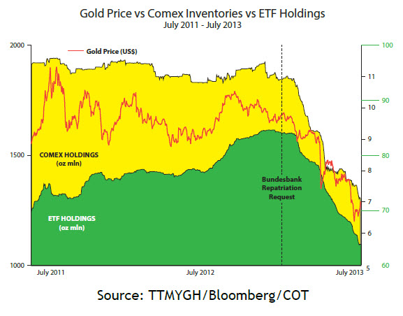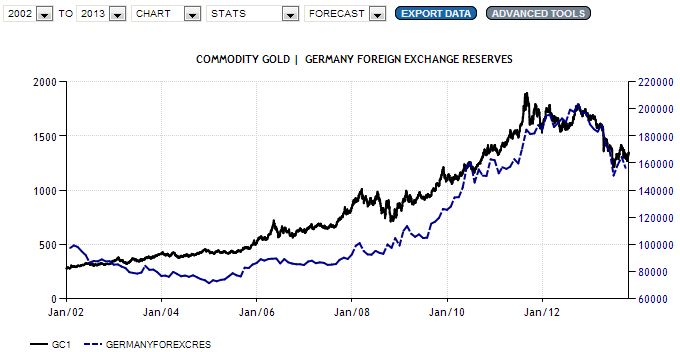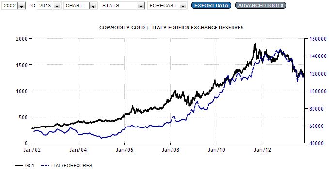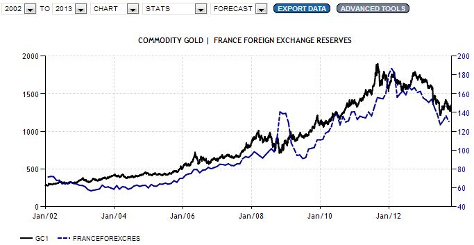 בעוד שתי מדינות אלה השייכות לגוש האירו משקפות גם את הירידה במחיר הזהב של השנה האחרונה, המדינות בגרפים בהמשך מאבדות את ההתאמה, במילים אחרות, מחיר הזהב יורד אך יתרות המטבע נשארות יחסית קבועות או אפילו ממשיכות לעלות: