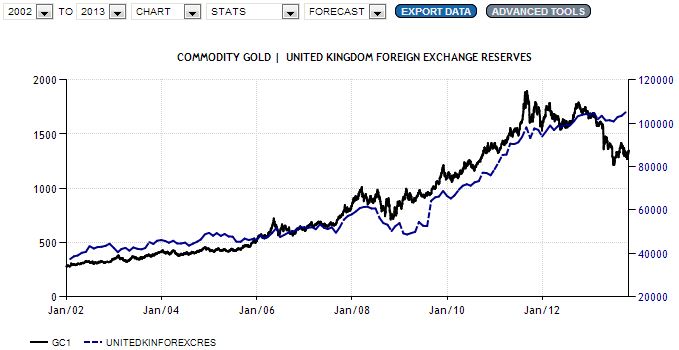 תוך כדי בחינת יתרות מטבע החוץ של כלכלות חזקות ברחבי הגלובוס מצאתי התאמה מעניינת למחיר הזהב.