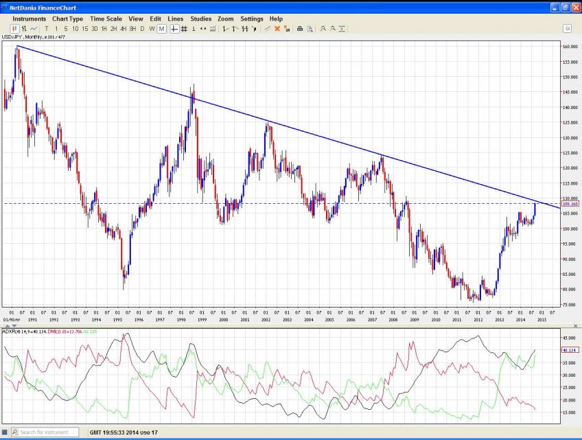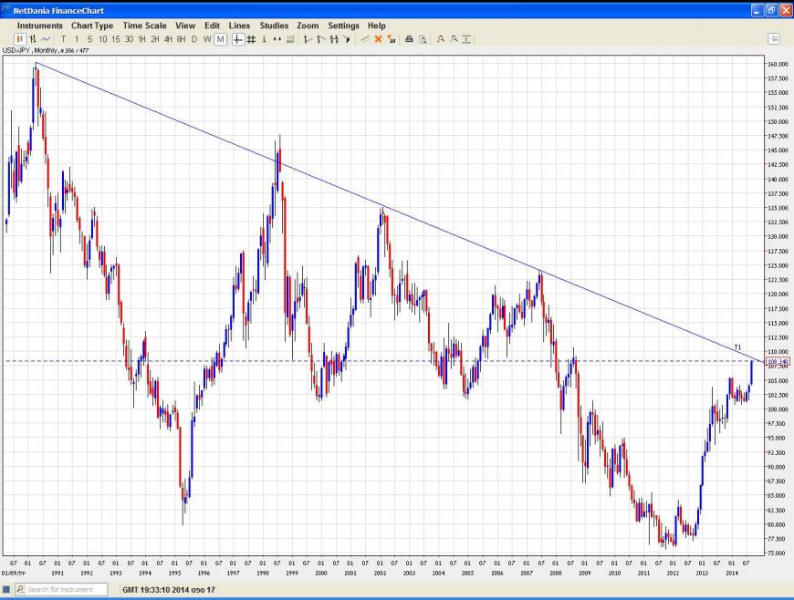 USD/JPY התנגדות של 25 שנה