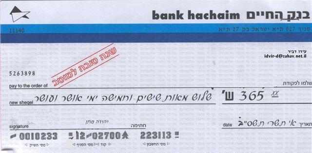 השיק הנ"ל הוא פג תוקף כבר שנה וחצי :-) אולי דרך הוצל"פ יש מה לעשות עם זה :-)