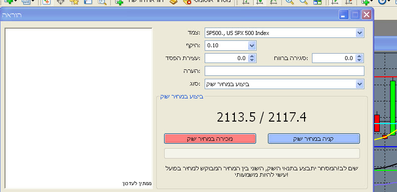 כתוספת לכול מה שנאמר אתמול , חייב להוסיף שכול ההרצאה דובר על קנייה או מכירה של " חוזה אחד" או יותר אבל לטובת המסחר ב CFD , ניתן הרי לווסת את ערך ההשקעה ולא חייבים כמובן לקנות או למכור כול הזמן " חוזה אחד" וזאת כמובן עבד לטובת חשבונות מסחר קטנים יותר נניח 80000$ - 10000 $ או אפילו פחות,