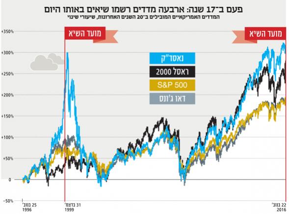 הנשיא הנבחר של ארה"ב דונלד טראמפ טרם נכנס לבית הלבן, אבל שוק ההון מקבל בברכה את צעדיו המתוכננים. מאז בחירתו של טראמפ לנשיאות ב־8 בנובמבר, רשמו מדדי המניות בארה"ב עלייה מצטברת של 3%, ושלושת המדדים העיקריים – דאו ג'ונס, נאסד"ק ו־S&P 500 – רשמו שיאים חדשים. ביום המסחר ביום שני חלקו שלושת המדדים המובילים ומדד ראסל 2000 גורל משותף שלא נראה מאז 1999: כל אחד מהם רשם שיא של כל הזמנים באותו היום. אתמול, בפתיחת המסחר, חצה לראשונה מדד דאו ג'ונס את רף 19 אלף הנקודות.