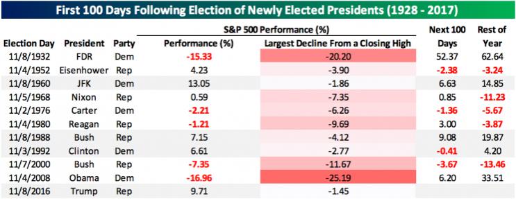 Since Trump’s election, the S&P 500 is up 9.7%. Only JFK had a better 100-day post-election performance among newly elected presidents going back to FDR’s initial election in 1932.