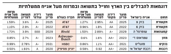 מעבר לתשואה אבסולוטית גבוהה יותר, במקרים רבים גם המרווח מעל אג"ח ממשלתיות באג"ח הדולריות גבוה מזה שניתן למצוא בקונצרני הישראלי. כך לדוגמה, אג"ח שקלית של