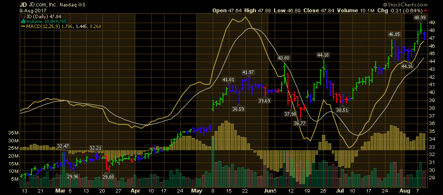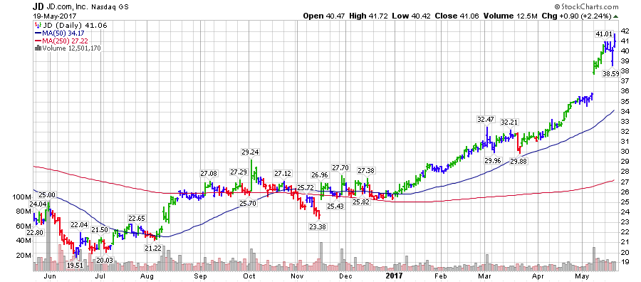 המגמה השורית הנוכחית החלה בתחילת השנה הנוכחית ומתקדמת במקביל לשוק ה-E-commerce הסיני.