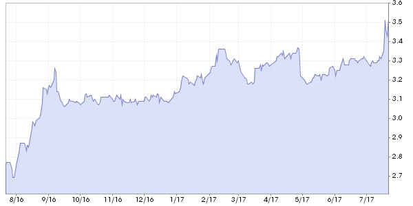 גרף מניית החברה שורי קל עם דישדוש כמעט כל השנה וצמיחה של כ-25%.