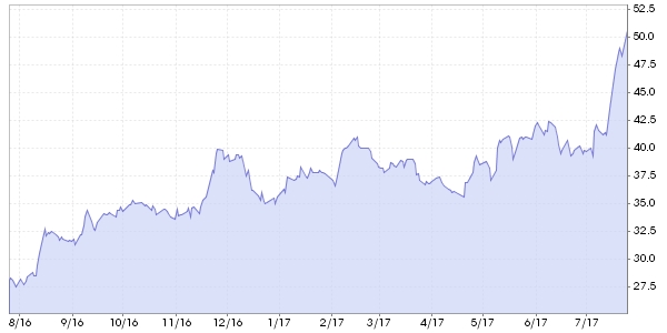 גרף המניה שורי עם צמיחה שנתית של כ-80%. מתנדי ה-MACD בעיצומו של גל צומח עם RSI בגזרת הלונג וסטוקסטי באיזור צומח עד רווי.
