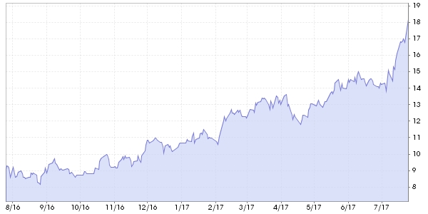 גרף המניה שורי עם צמיחה שנתית של כ-100%. מתנדי ה-MACD בעיצומו של גל שורי עם RSI בגזרת הלונג וסטוקסטי צומחים מאוד.