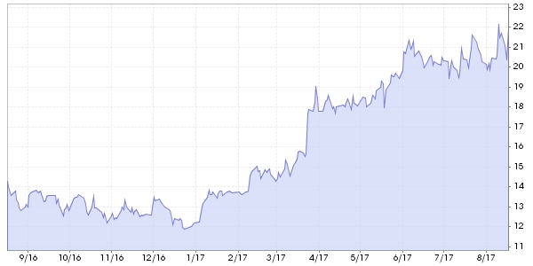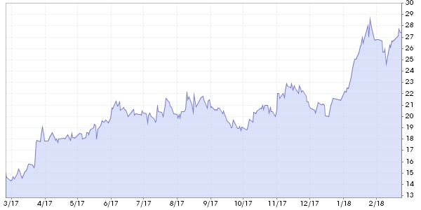 הגרף השנתי למניה שורי קל עם צמיחה של כ-50%
