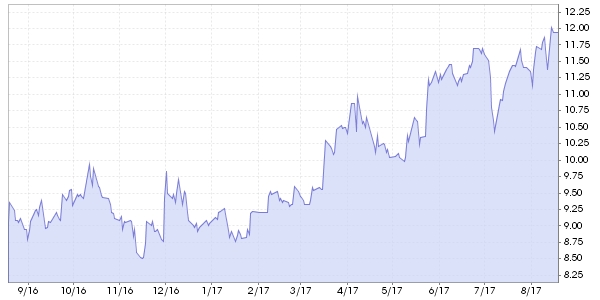 הגרף השנתי למניה שורי קל עם צמיחה של כ-40%