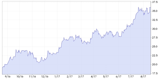 הגרף השנתי למניה שורי עם צמיחה של כ-100%