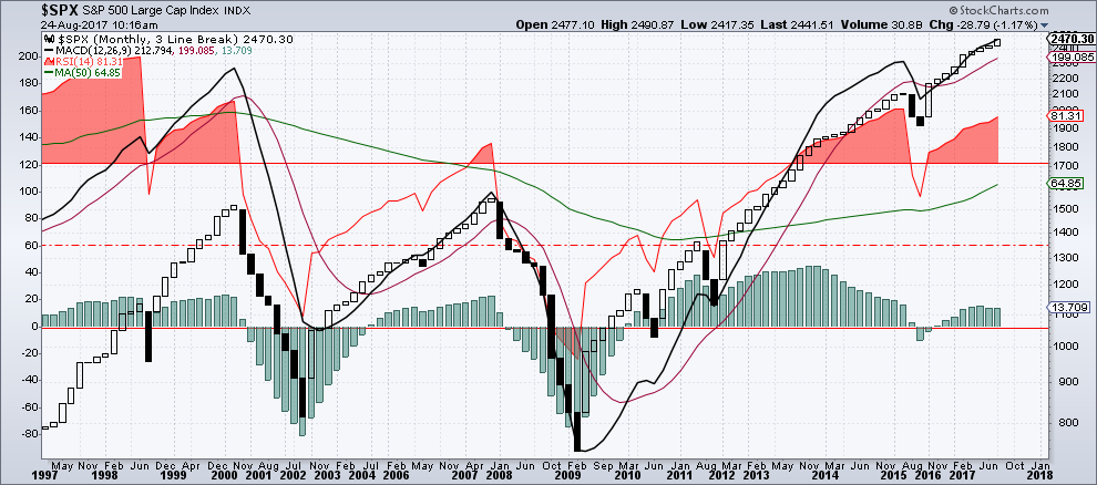 הגרף החודשי שלפננו מראה את התנהלות מדד ה-500 S&P ב-20 השנים האחרונות בהשתנות המחירים וההיפוכים -